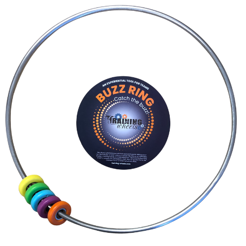 The Buzz Ring is a great activity to do with your group, to either start your day or end your day on. Get the "Buzz Rings" whirring on the large ring and talk about the "buzz words" that your group uses all of the time, 'teamwork' 'trust' 'communication'--get them talking more in-depth about what those words mean with the aid of the buzz ring.