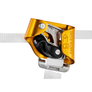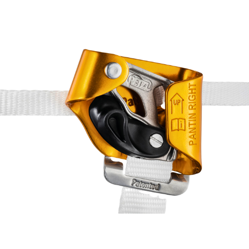 The PANTIN foot-mounted rope clamp is used with the CROLL, ASCENSION, or ASCENTREE rope clamps to make rope ascents faster and less tiring. It is available in right- and left-foot versions.