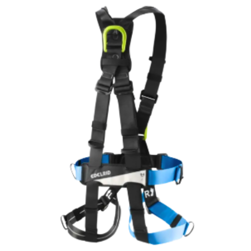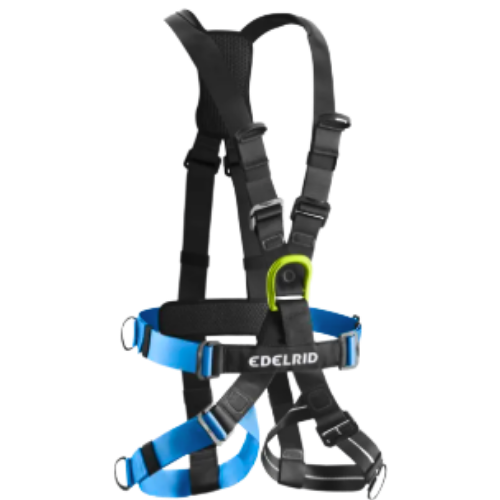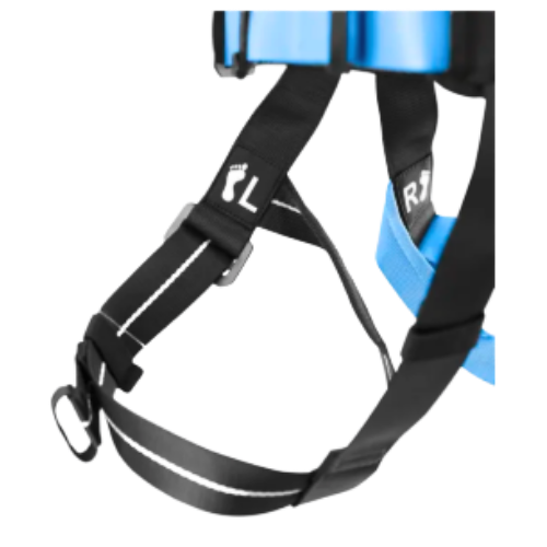 Easily adjustable and versatile full body harness for use on high rope courses. The different colors of the shoulder, hip and leg straps make the harness intuitive to put on and enable trainers to check it quickly and reliably. The eight Slide Block buckles enable the fit of the harness to be optimally adjusted for a wide range of user heights and sizes. Thanks to the dorsal eyelet certified to EN 361, the RADIALIS AIR offers an additional attachment point, for example for use with pamper pole elements. The labeling field and integrated RFID transponder can be used to personalize the harness and make it far easier to document its use.