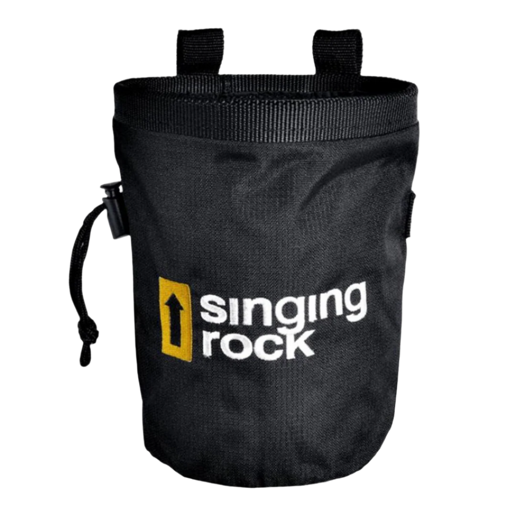 - Large chalk bag with prompt closing system and braced welt for easy handling