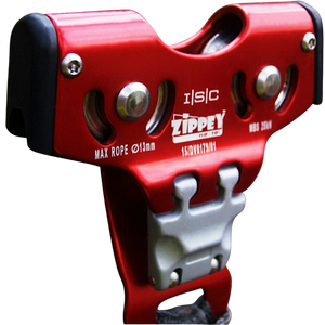 Zippey is manufactured from high-spec 4mm aluminium plate, has a forged Aluminium gate and Stainless Steel wheels; all of which offer the best weight to performance ratio on the market. The Zippey trolley weighs 450g (1.0lb), [equaling the weight of the Petzl Trac+], yet has an MBS of 25kN (5620lbf) and therefore exceeds the 2260kg (5000lb) rating required by US standards, as well as being fully CE approved.