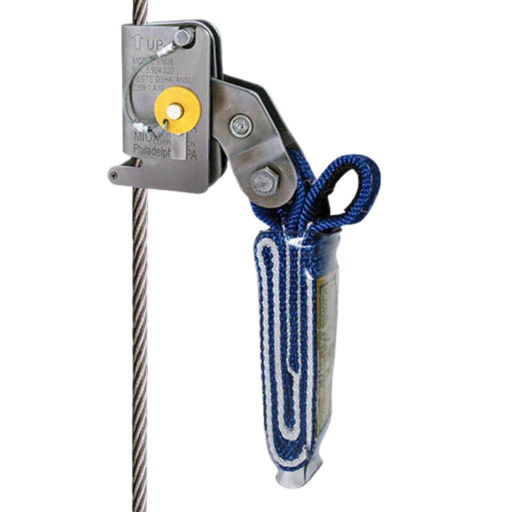 MIO patented cable grabs are designed to provide fall protection for workers or participants ascending or descending from a variety of vertical structures.