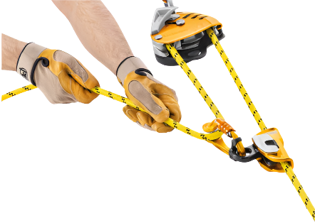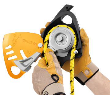- integrated progress-capture pulley with very large diameter sheave mounted on sealed ball bearings; rotates in only one direction for excellent hauling efficiency