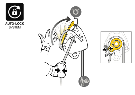 - AUTO-LOCK system allows the rope to be blocked automatically when the handle is not in use. Once locked, the rope can be taken up without having to manipulate the handle.