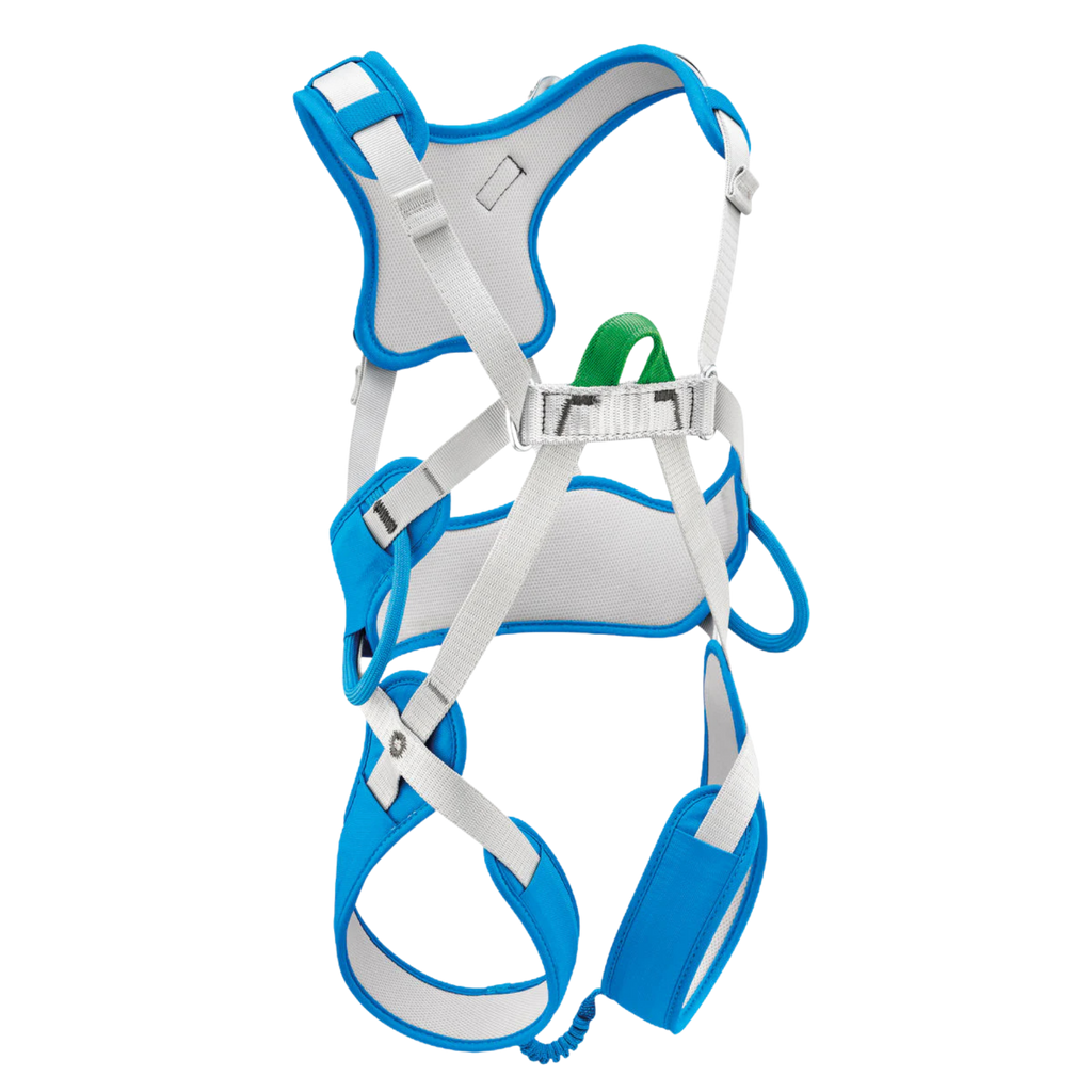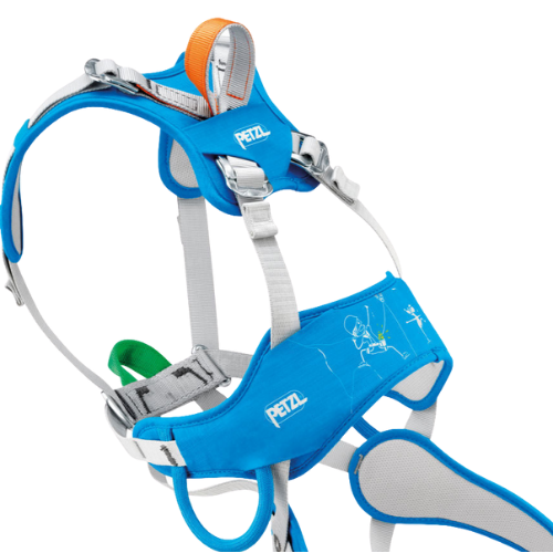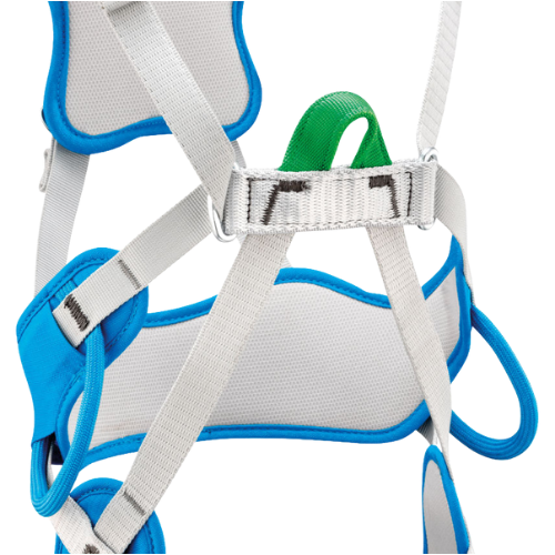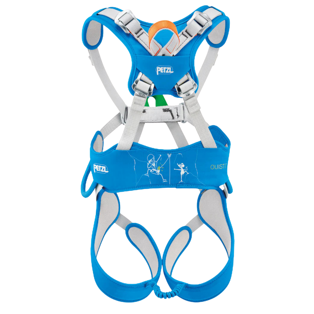To belay your child on their very first climbs! OUISTITI is a harness that is easy to put on and adjust, designed for children weighing less than 30 kg. It does not require a connector to be fastened, and the adjustment system is difficult for a child to access. The padded foam structure and the front tie-in point make it a comfortable harness, even while hanging. The rear attachment point allows you to connect the harness for other specific activities.