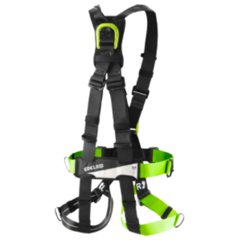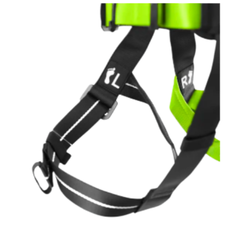 Easily adjustable and versatile full body harness for use on high rope courses. The different colors of the shoulder, hip and leg straps make the harness intuitive to put on and enable trainers to check it quickly and reliably. The eight Slide Block buckles enable the fit of the harness to be optimally adjusted for a wide range of user heights and sizes. Thanks to the dorsal eyelet certified to EN 361, the RADIALIS AIR offers an additional attachment point, for example for use with pamper pole elements. The labeling field and integrated RFID transponder can be used to personalize the harness and make it far easier to document its use.